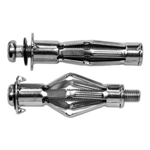 Дюбель МоллиДюбель Молли изготавливается из стали с гальваническим покрытием - цинком. Он состоит из винта и полой цанги. Цанга состоит из четырёх фиксирующих сегментов и нераспорной части. Что касается длины нераспорной части дюбеля, то она должна подбираться в соответствии с толщиной основания (гипсокартона и т.п.). От проворачивания внутри отверстия дюбель "Молли" защищают острые зубцы. Они находятся непосредственно на стопорном бортике. Наличие стопорного бортика предотвращает проваливание дюбеля внутрь отверстия. Подробнее >>>