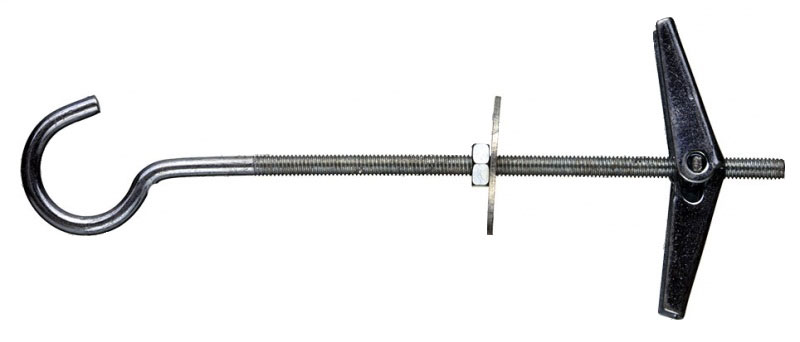 Дюбель складной пружинный с крючком (солдатик)Дюбель складной пружинный с крюком состоит из специального пружинного механизма, стопорных складных крыльев и стержня, на котором имеется метрическая резьба. Дюбель изготавливают из стали. Затем поверхность дюбеля пассивируют и оцинковывают. Дюбель применяют для монтажа в такие пустотелые материалы, как потолочные перекрытия с пустотами, ДСП или гипсокартон. Подробнее >>>